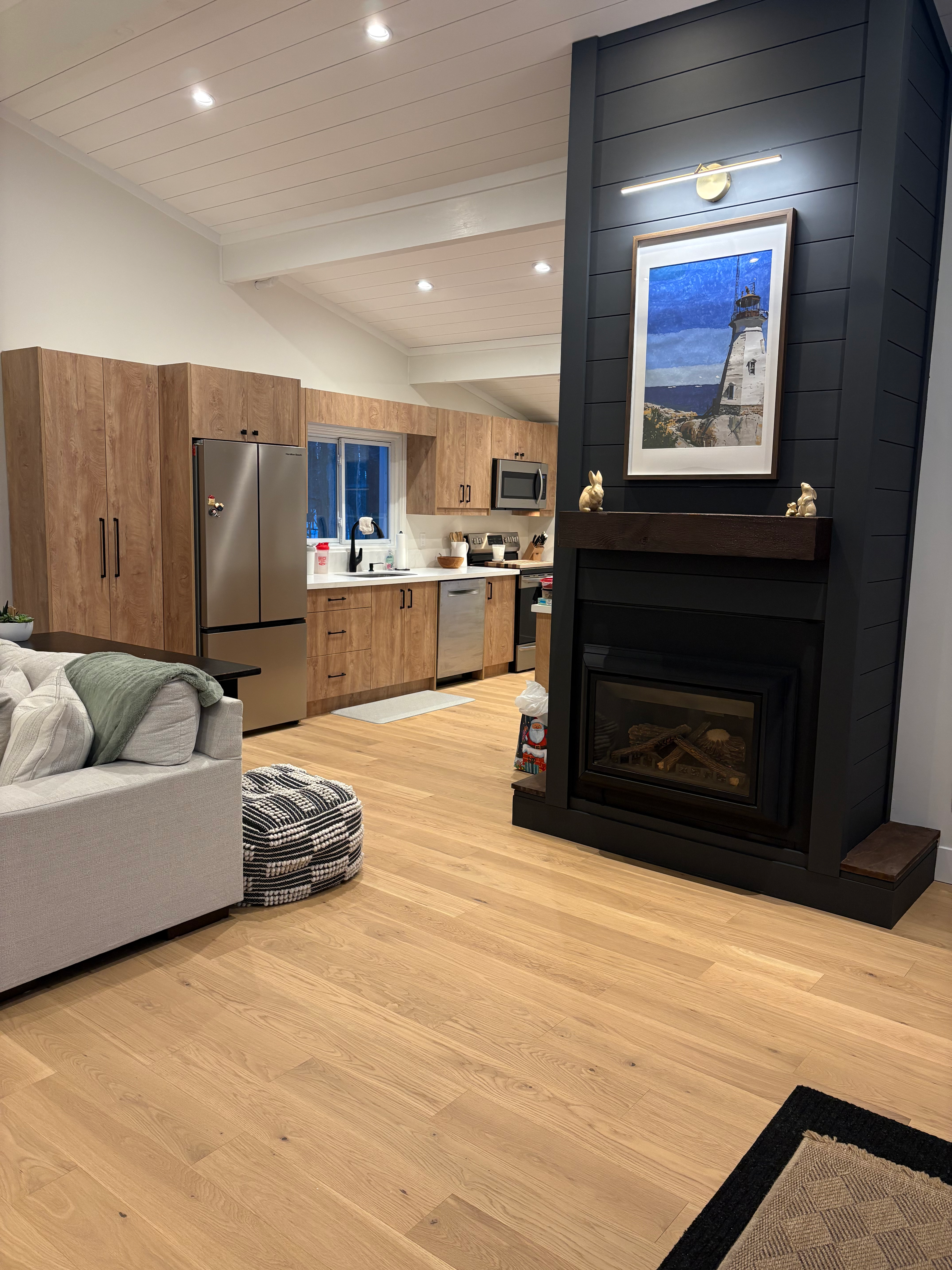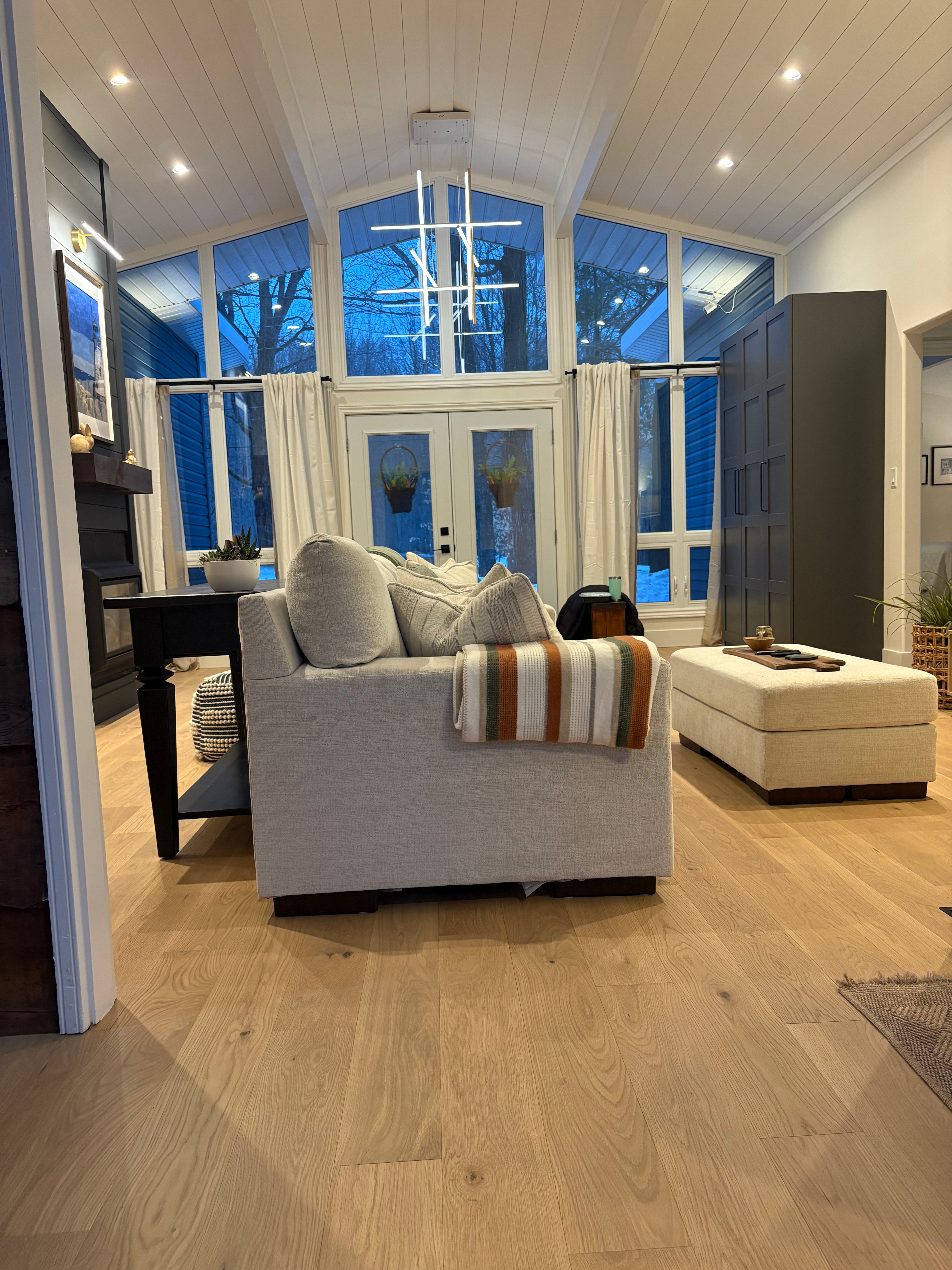 Oak Valley Custom Hardwood Flooring installed a beautiful wide plank engineered hardwood flooring on this stunning Waterfront Home on Georgian Bay.